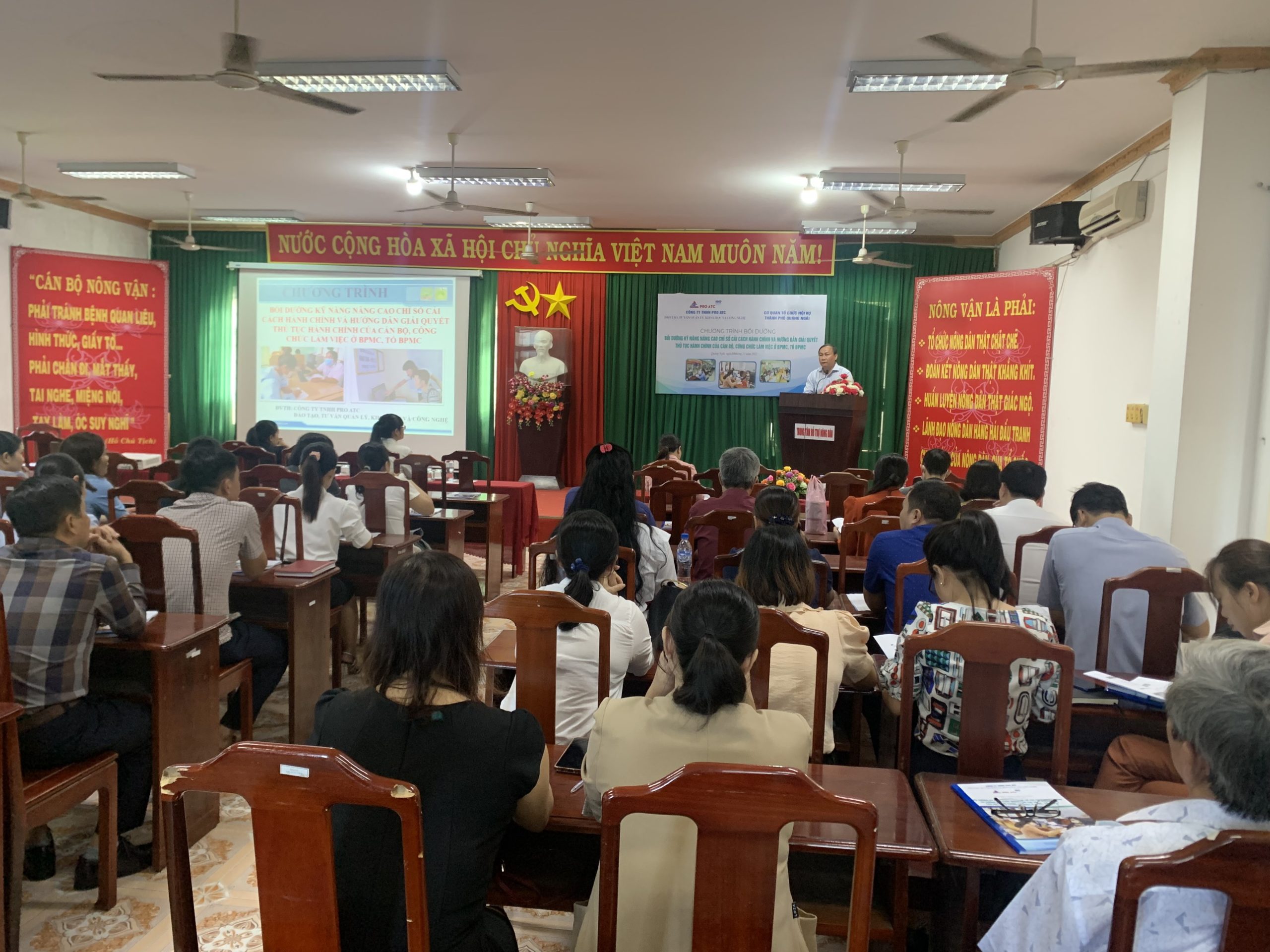 Sáng ngày 28/11/2022 Công ty TNHH PRO ATC cùng Cơ quan Tổ chức – Nội vụ Thành phố Quảng Ngãi đã khai mạc lớp “Bồi dưỡng nhận thức, thực hiện chỉ số cải cách hành chính và kỹ năng hướng dẫn giải quyết thủ tục hành chính của cán bộ, công chức làm việc ở BPMC, tổ BPMC” cho công chức tham mưu công tác cải cách hành chính, công chức tham gia công tác giải quyết thủ tục hành chính ở Bộ phận một cửa ở thành phố và tổ một cửa cấp xã, phường Thành phố Quảng Ngãi.