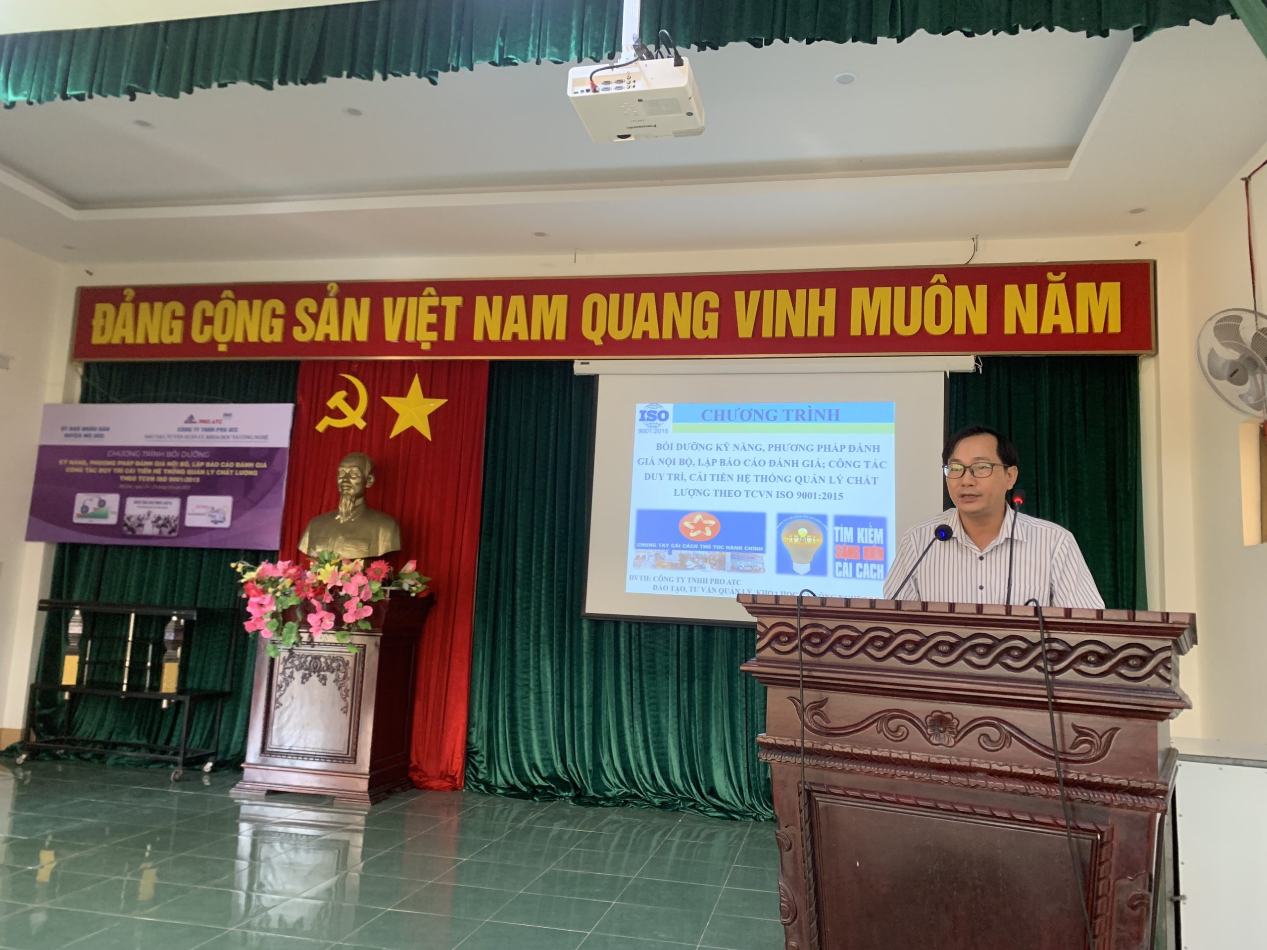 Sáng ngày 24-25/10/2023 phòng Nội vụ huyện Mộ Đức phối hợp cùng với công ty TNHH PRO ATC tổ chức lớp Bồi dưỡng kỹ năng phương pháp đánh giá nội bộ, lập báo cáo đánh giá công tác duy trì, cải tiến hệ thống quản lý chất lượng theo TCVN ISO 9001:2015 cho cán bộ huyện Mộ Đức