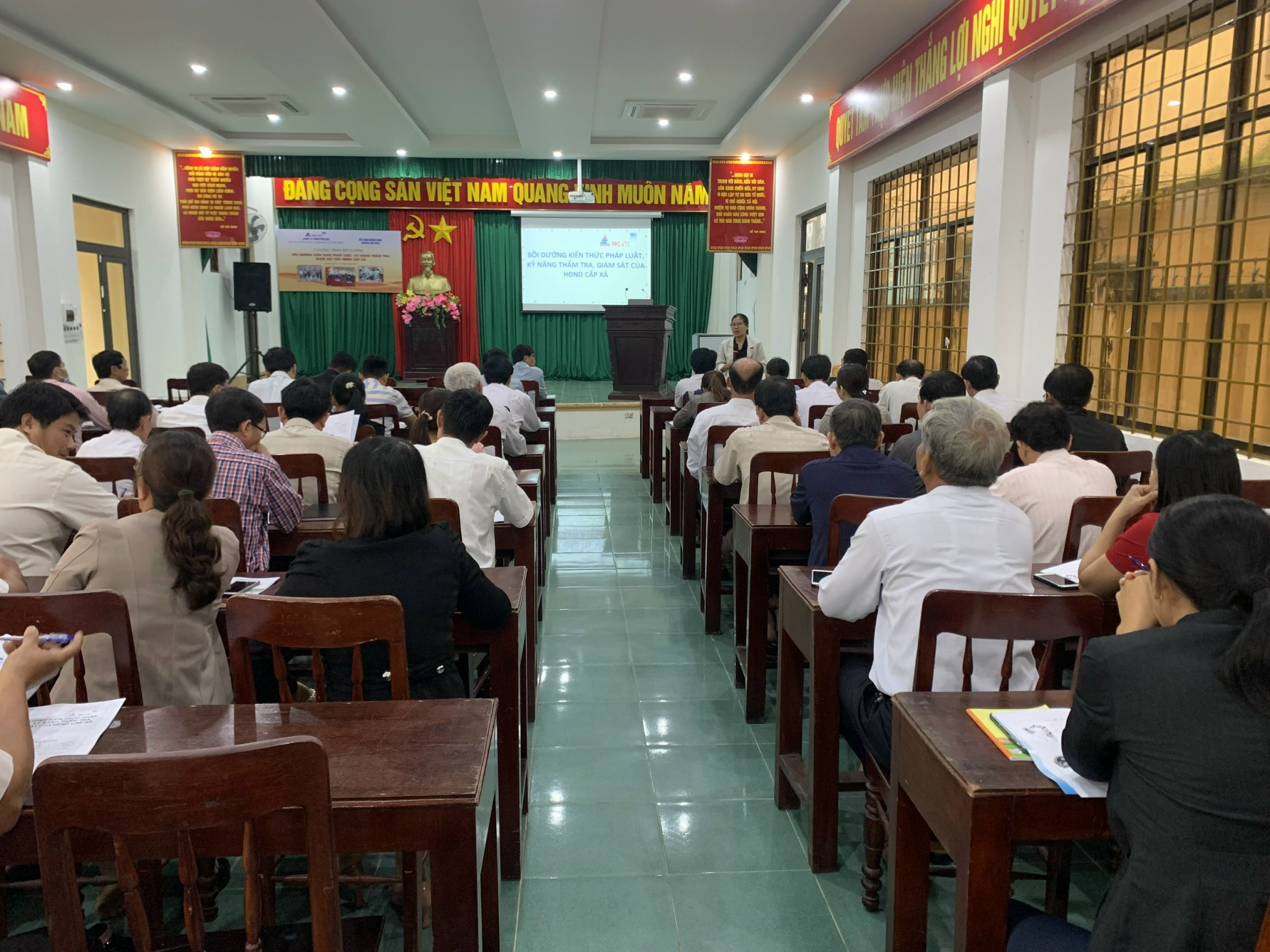 Trực tiếp giảng dạy lớp bồi dưỡng có TS Thái Thị Phương Lan (1) và có sự tham dự của 65 học viên là Chủ tịch, Phó Chủ tịch HĐND, Trưởng, Phó Ban pháp chế, Ban kinh tế HĐND cấp xã của 13 xã, thị trấn huyện Mộ Đức. Mục tiêu chương trình bồi dưỡng nhằm hỗ trợ kỹ năng thẩm tra cho Hội đồng nhân dân.