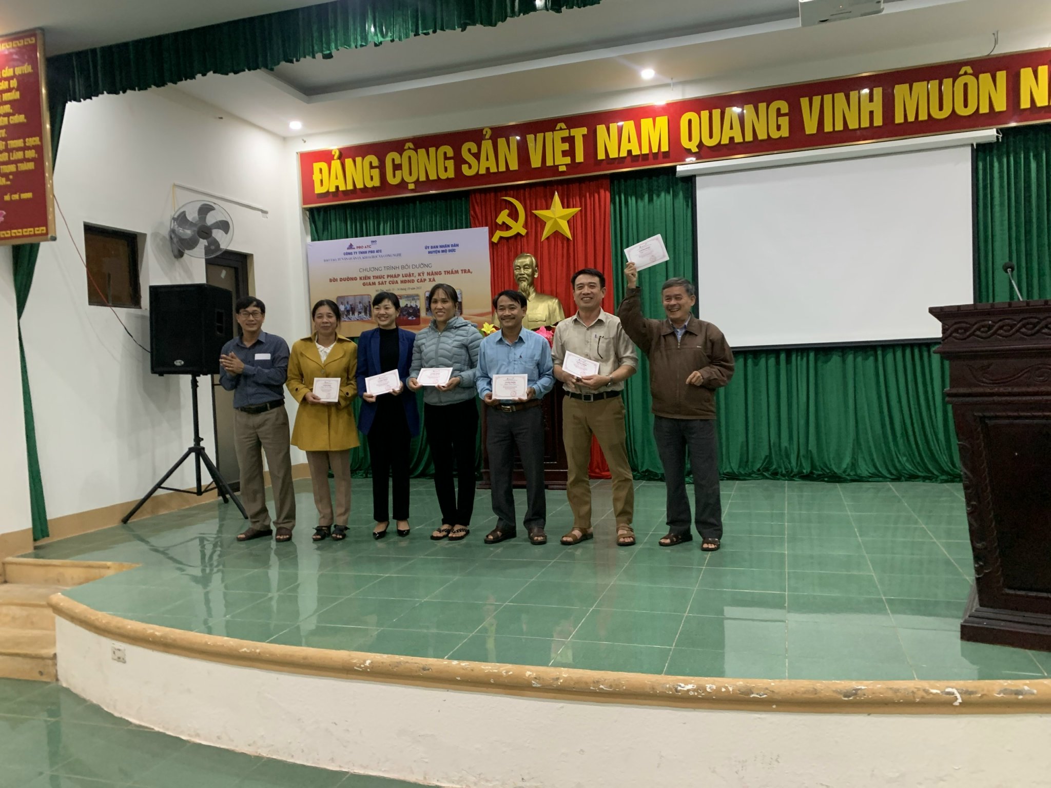 Sáng ngày 13/10/2022 Công ty TNHH PRO ATC đã phối hợp cùng với Cơ quan Tổ chức – Nội vụ huyện Mộ Đức tổ chức khai mạc lớp bồi dưỡng “Kiến thức pháp luật, kỹ năng thẩm tra, giám sát của HĐND cấp xã” tại thị trấn Mộ Đức. Thời gian khóa bồi dưỡng diễn ra hai ngày, ngày 13 và ngày 14 tháng 10 năm 2022.